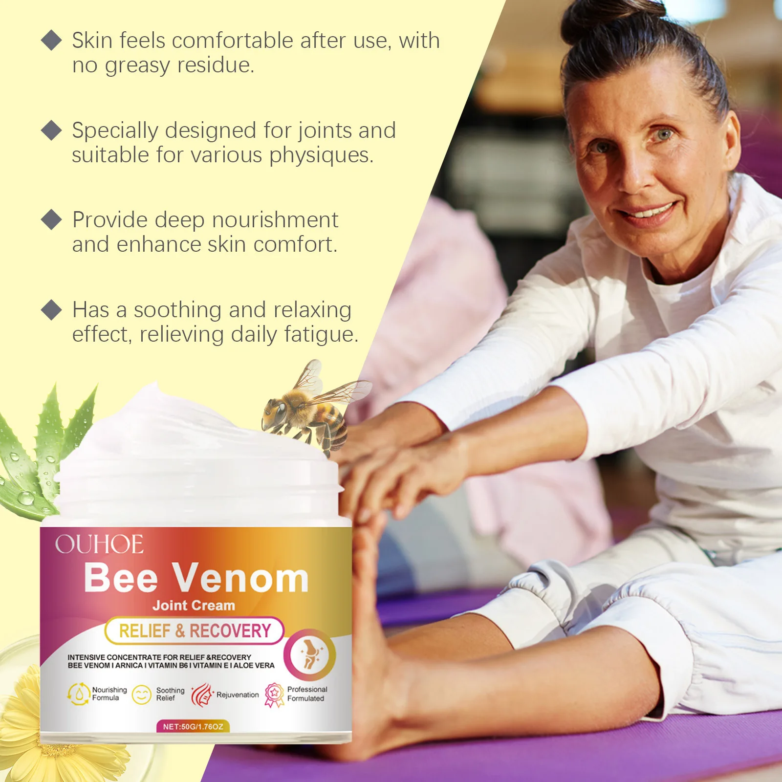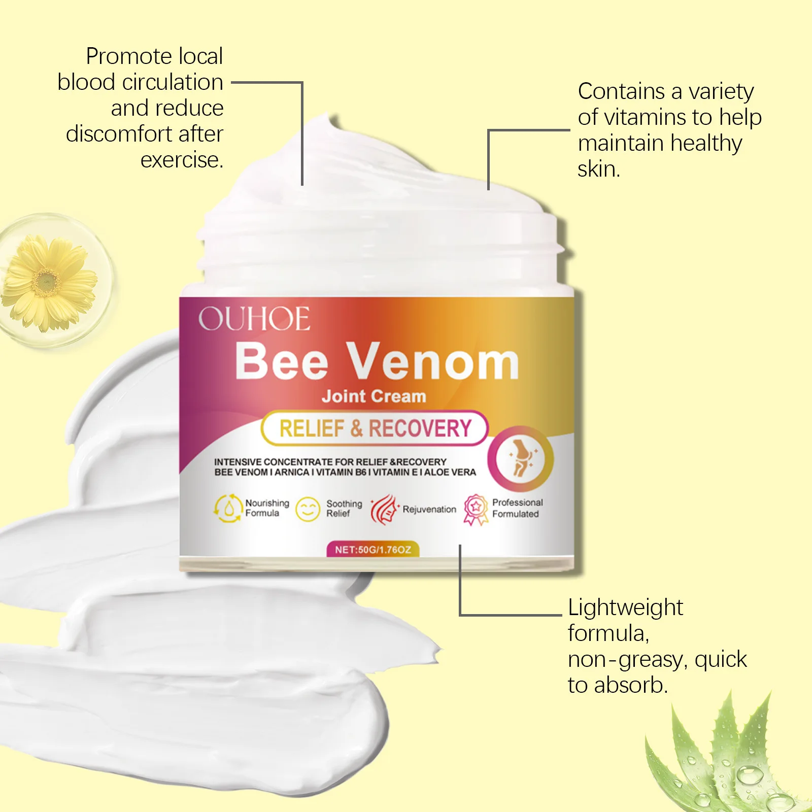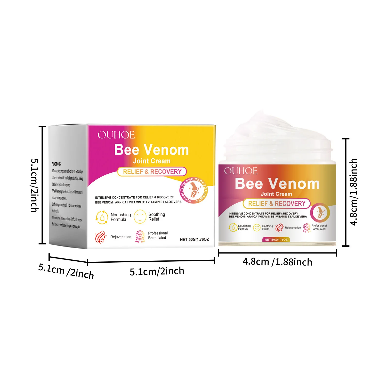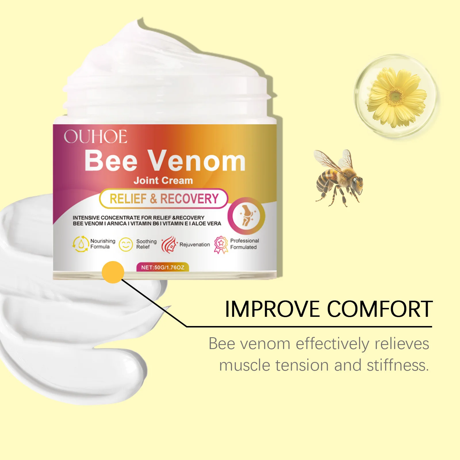 Este poderoso crema está enriquecido con ingredientes antiinflamatorios, como péptidos de veneno de abeja y fosfolipasa A2, que ayudan a reducir la inflamación, aumentar la producción de colágeno y acelerar la reparación de la piel. Estudios demuestran que elimina eficazmente señales, verrugas, cicatrices y pigmentación, dejando tu piel más lisa, saludable y sin irritación.